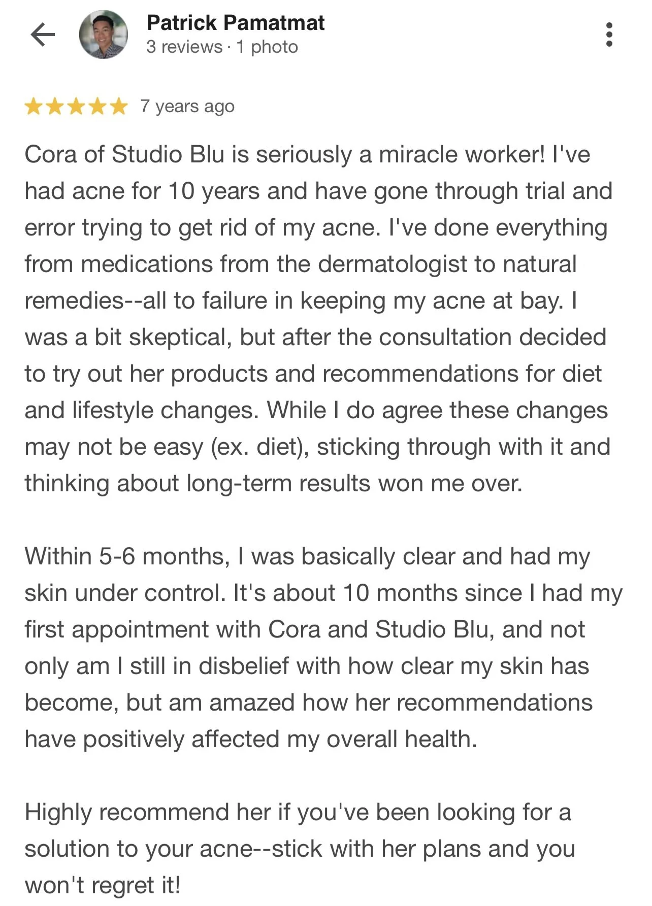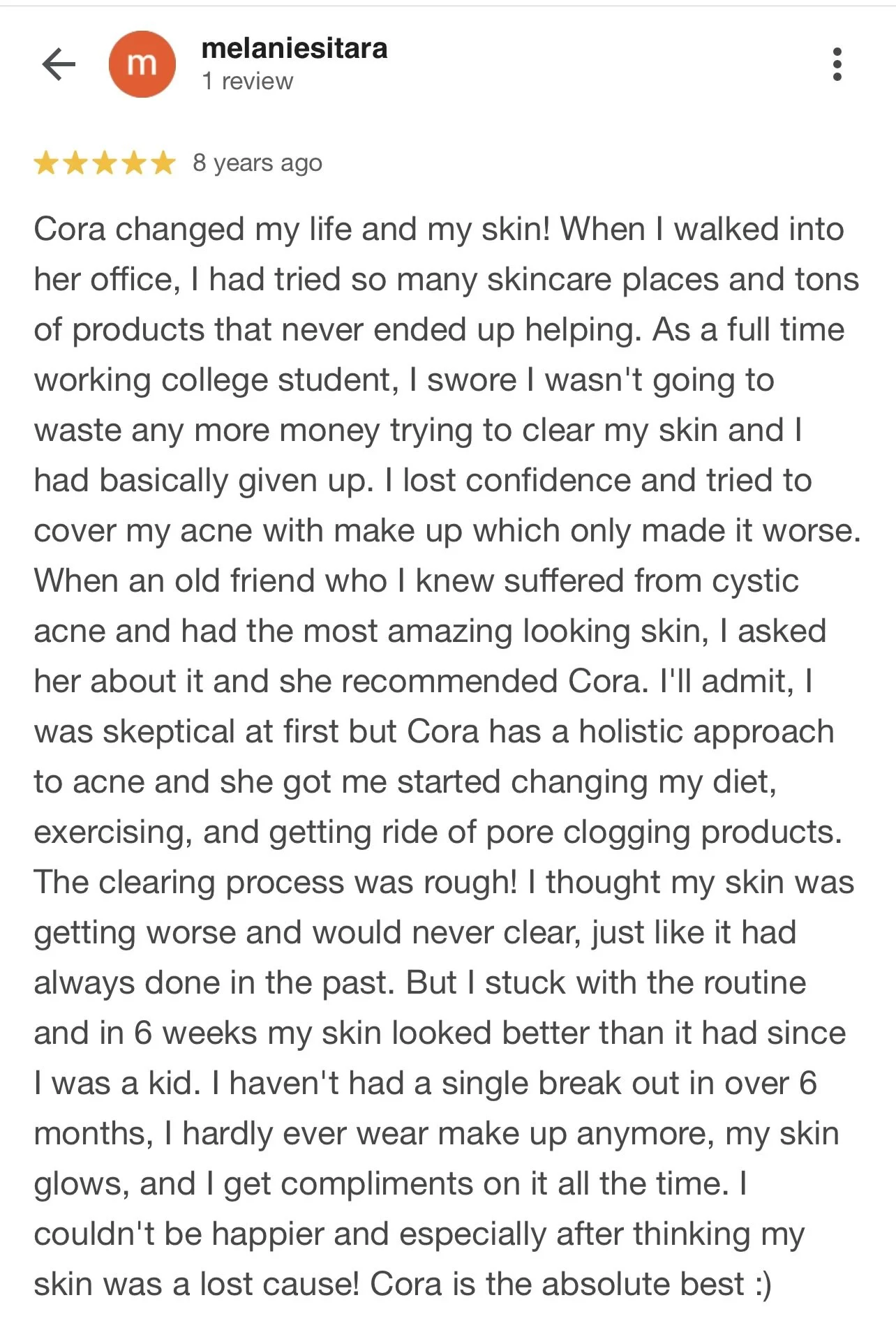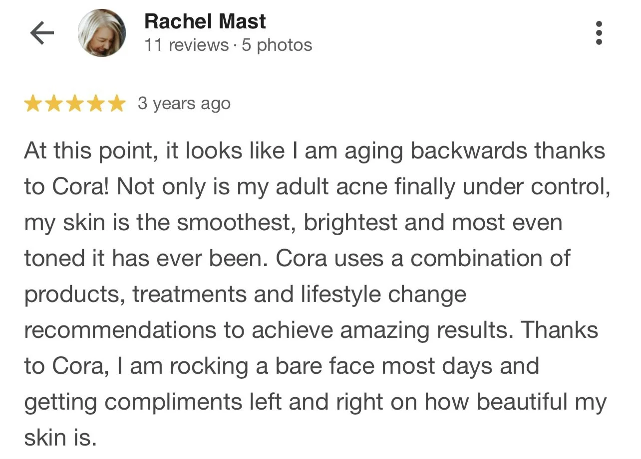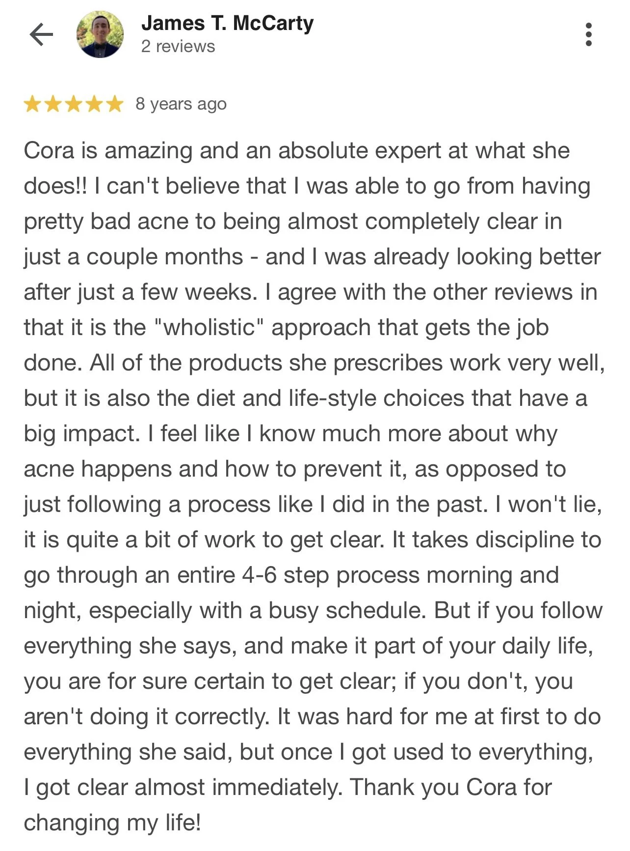“Cora is simply a miracle worker! ...I'd never imagined my skin looking this well" Patrick FIVE STARS