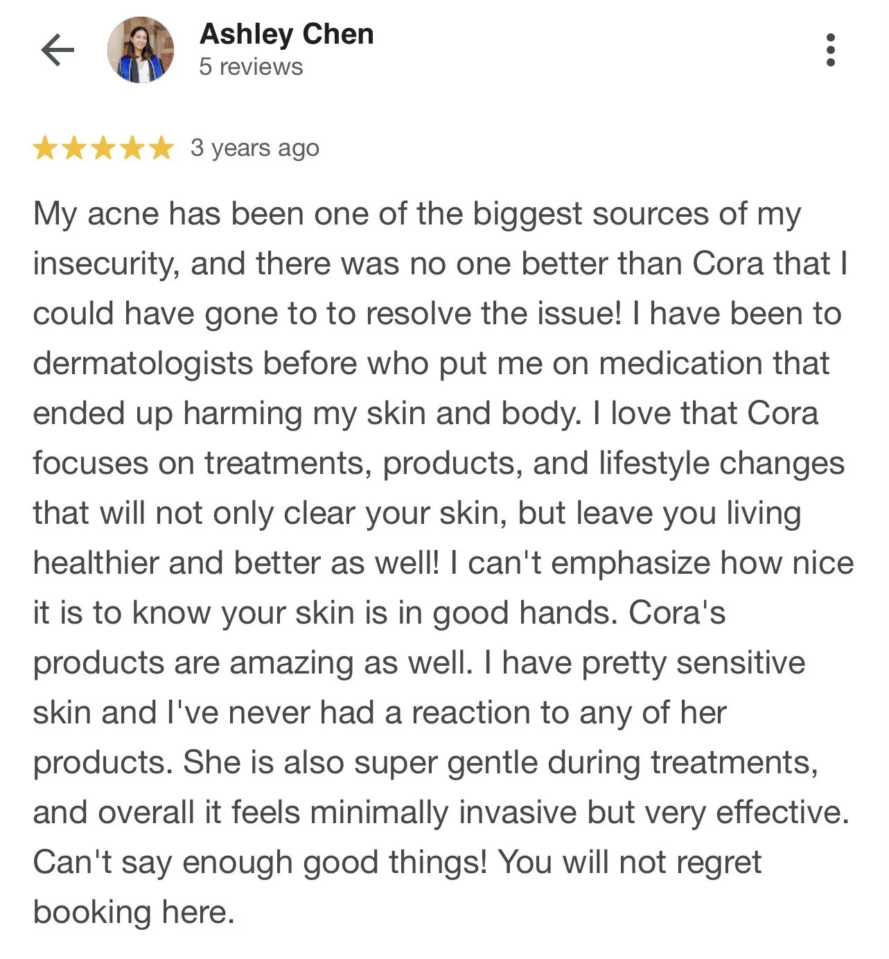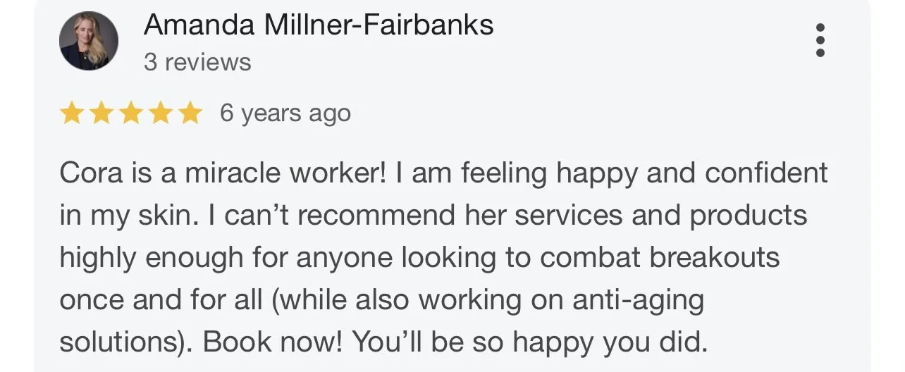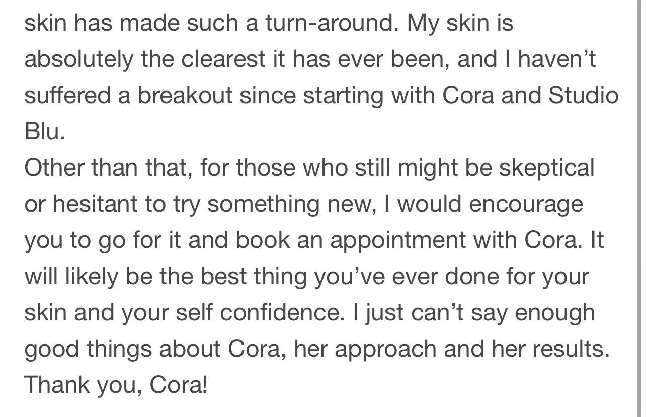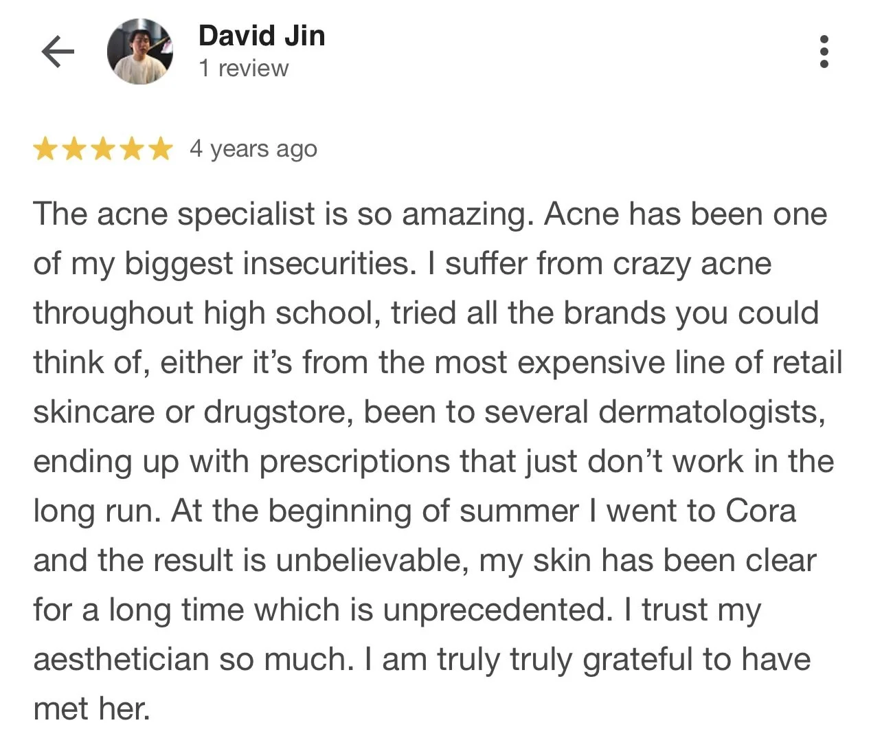 “Cora is simply a miracle worker! ...I'd never imagined my skin looking this well" Patrick FIVE STARS