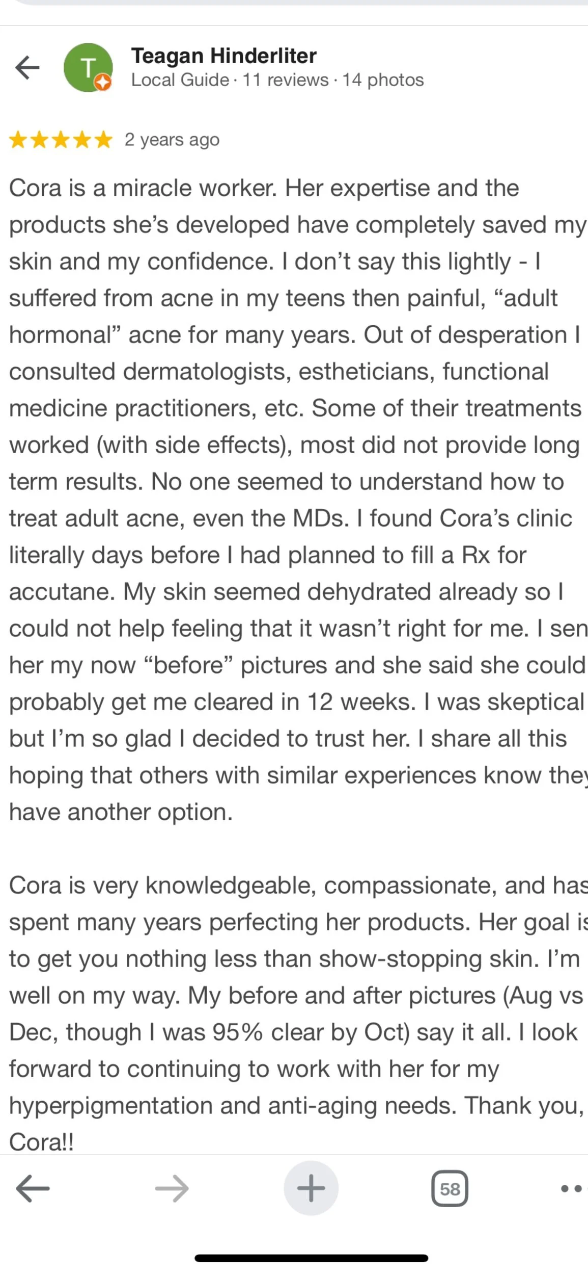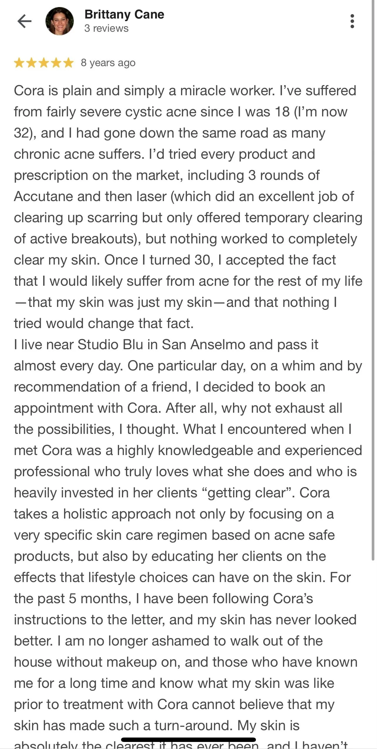“Cora is plain and simply a miracle worker.” - Brittany FIVE STARS.